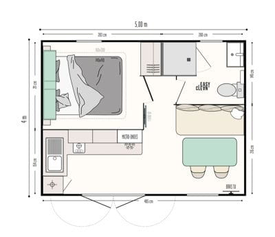 – 1 Schlafzimmer mit 1 Doppelbett (160 x 200).