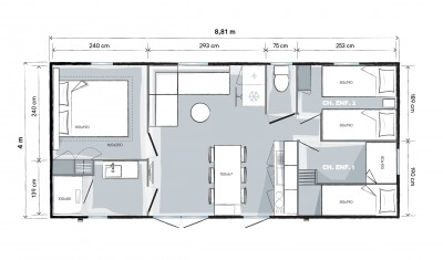 – 2 Schlafzimmer mit je 2 Einzelbetten (80 x 190 cm)